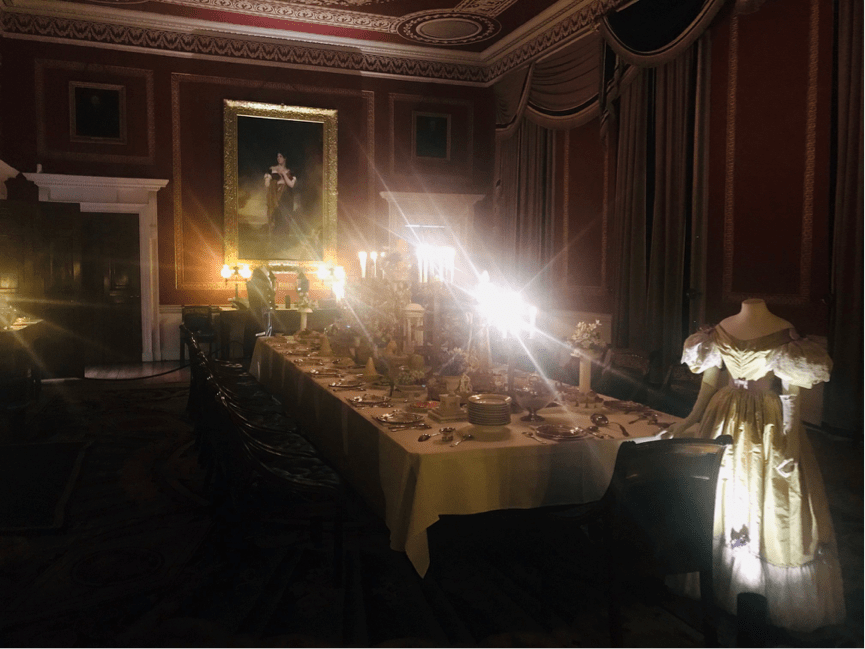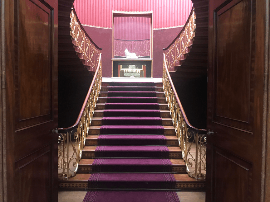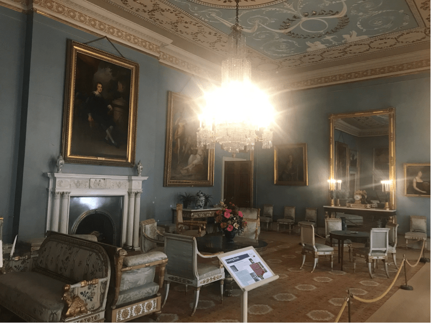 The side reserved for ladies includes a grand sitting room with an impressive chandelier – which is actually only half the size of the one which lit the room before the family’s financial collapse – an ante-room for another reception room and a ‘boudoir’, presumably for more sitting. Because that’s all women did, right?