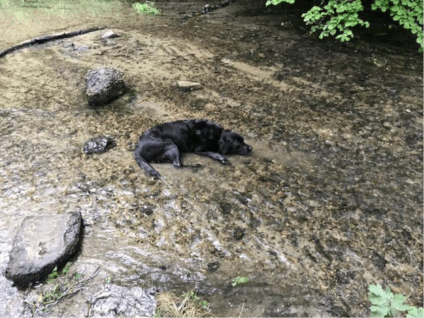 Sidenote: On the way back down, a certain black Labrador and I found a beautifully clear river, which he promptly lay down in.