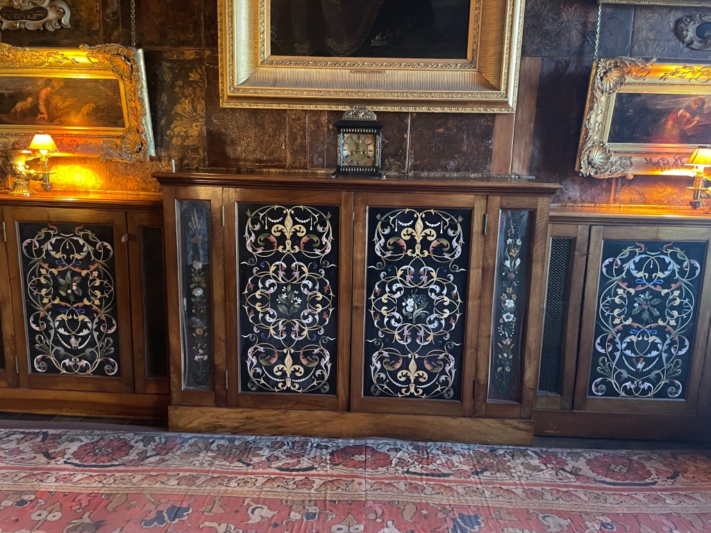 One room in particular – known as the Spanish Room – was designed entirely by William John in his 14 years of exile, which is a truly impressive feat given the intricacies of the room such as the tiled fireplace. In addition he designed a beautiful radiator cover with a complex pattern, each panel encapsulating one of the four seasons, and the had it shipped across from Venice to complete the room.