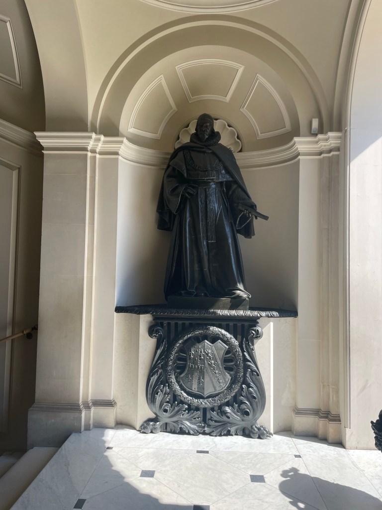 Eventually it came to be owned by John Bankes, Attorney General to King Charles I, who was the man who also owned Corfe Castle. As we discovered on our visit to Corfe earlier this year, staunch Royalist Sir Bankes died during the Civil War, leaving his wife to hole up and defend Corfe Castle from two sieges. The two statues now found halfway up the stairs commemorate their dedication to the monarchy.